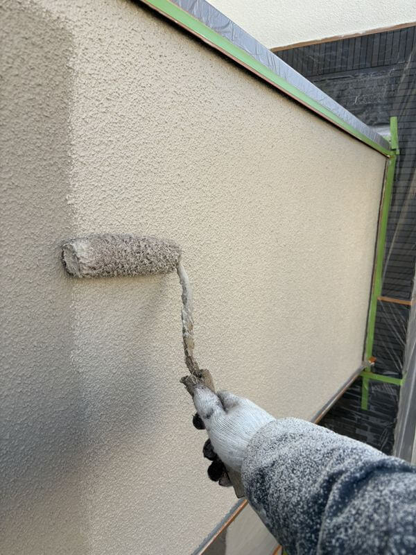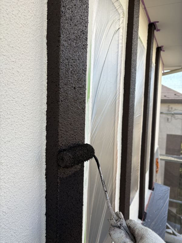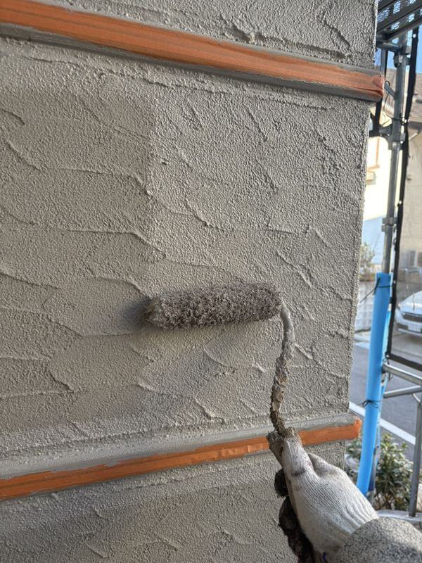 アクセント部分の上塗りの続きを行いました。(エスケー化研 アートフレッシュ AC-1186)