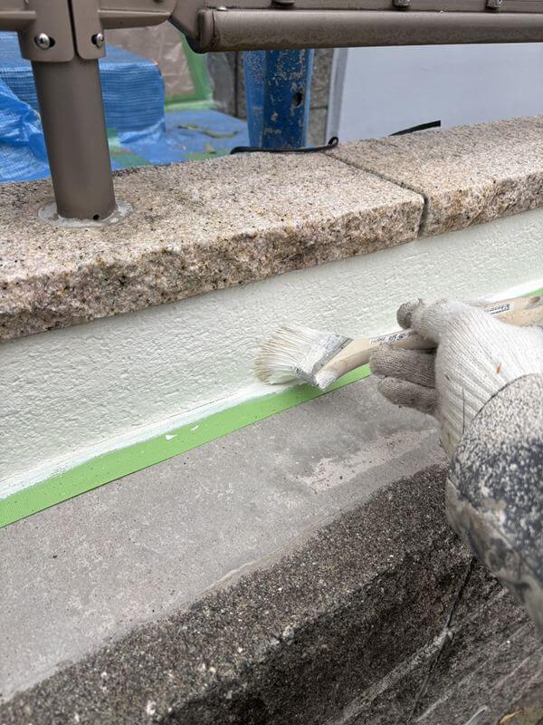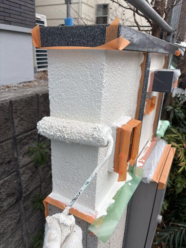 門柱の塗装の中塗りをしています。(エスケー化研 アートフレッシュ AC-1002)