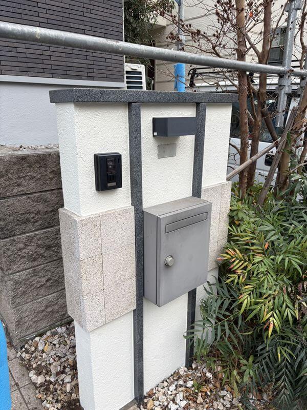 門柱の上塗りも完成しました。(エスケー化研 アートフレッシュ AC-1002)