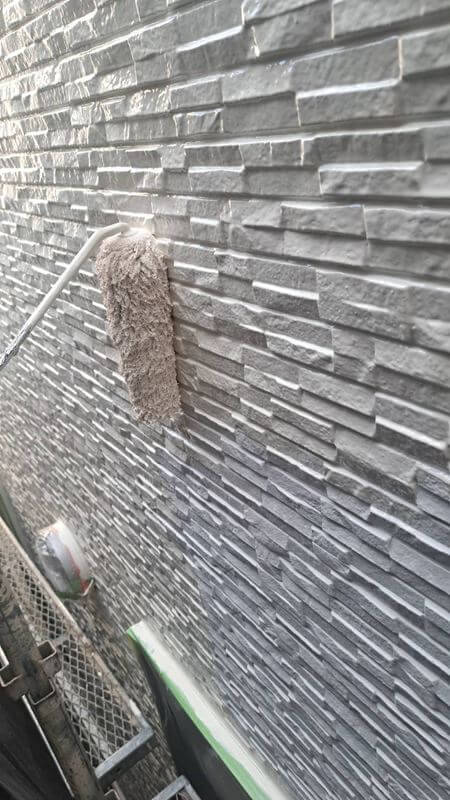 外壁の下塗りを行っています。(エスケー化研マイルドシーラーEPO)
