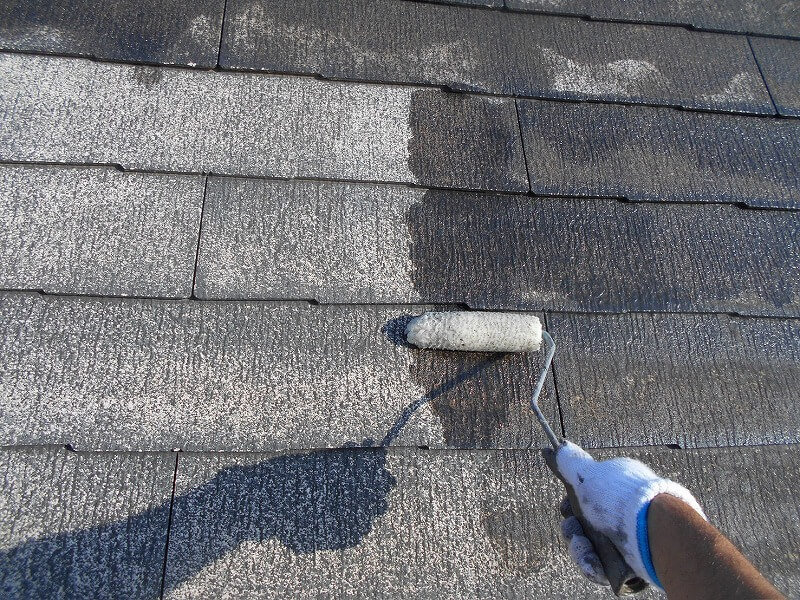 屋根の下塗り中です。(エスケー化研 マイルドシーラーEPO クリヤー)