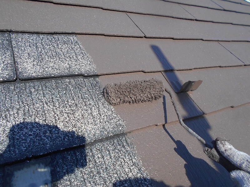 屋根の下塗り中です。(エスケー化研 マイルドシーラーEPO クリヤー)