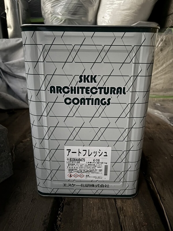外壁の中塗りで使用した塗料です。(エスケー化研 アートフレッシュ AC-2100)