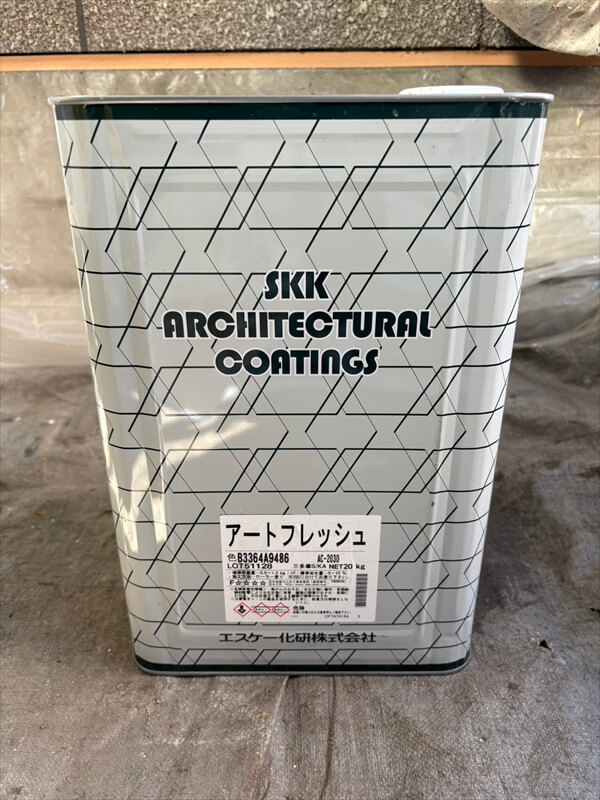 外壁の中塗りに使用した塗料です。(エスケー化研 アートフレッシュ AC-2030)