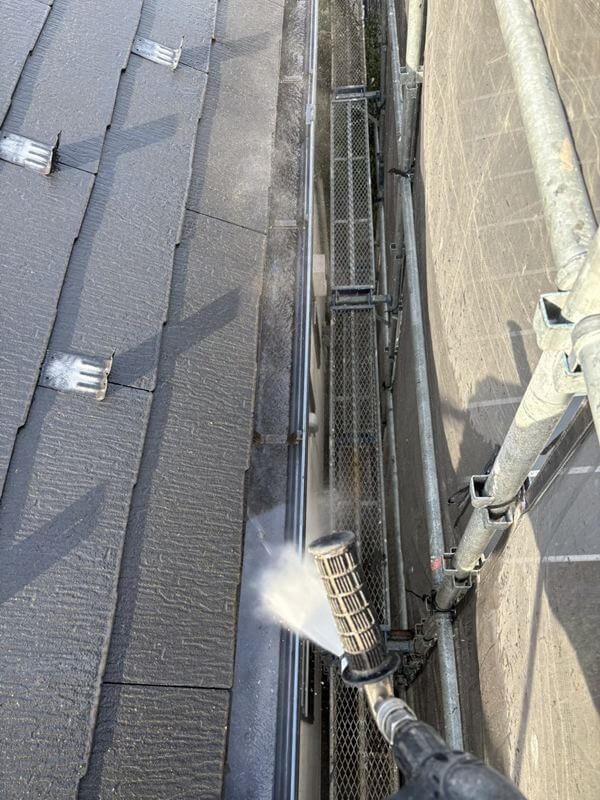 雨樋の汚れも洗い流していきます。