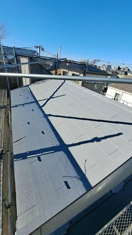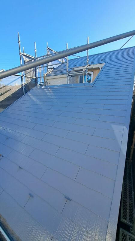 屋根の上塗りが完成しました。(エスケー化研 クールタイトSi CLR-106)