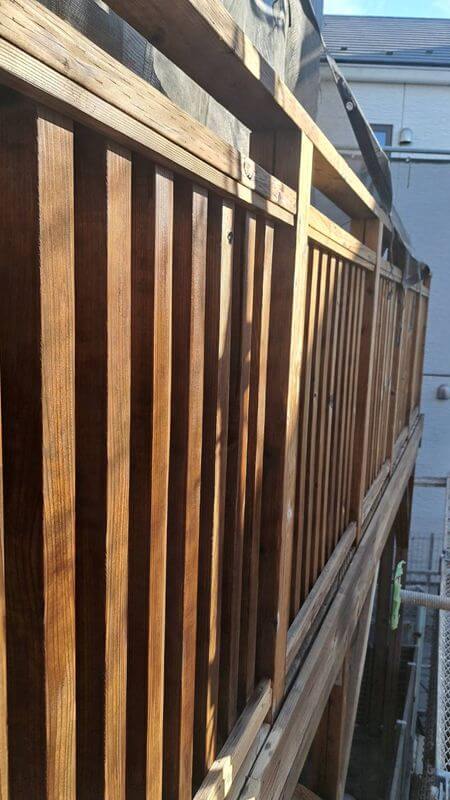 ウッドデッキの外側のケレン作業を行いました。