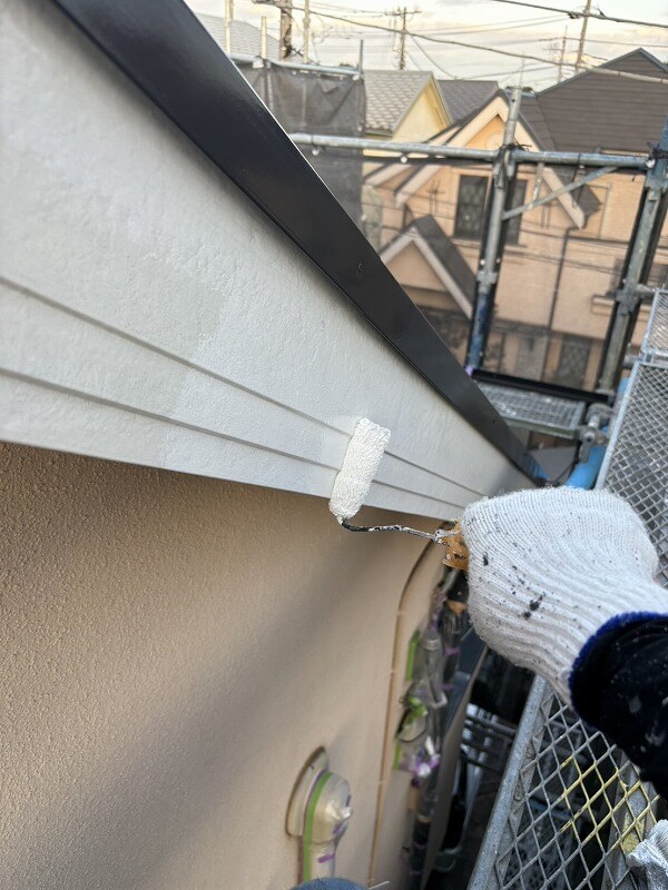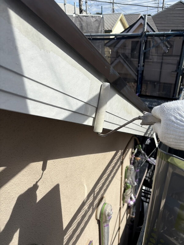 破風板の中塗りをしています。(エスケー化研 マイルドSDサーフエポ プレミアム)