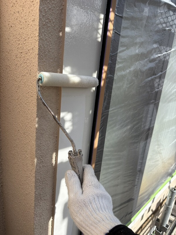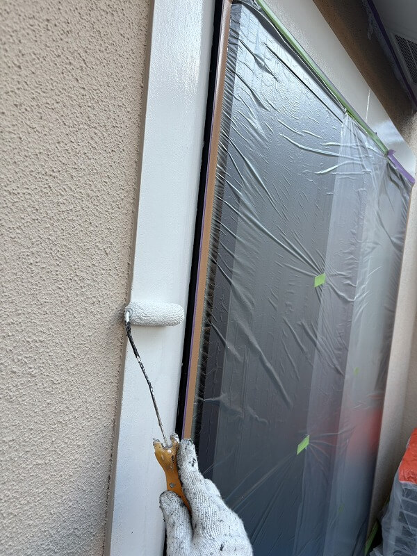 窓枠の下塗り中です。(エスケー化研 マイルドシーラーEPO クリヤー)
