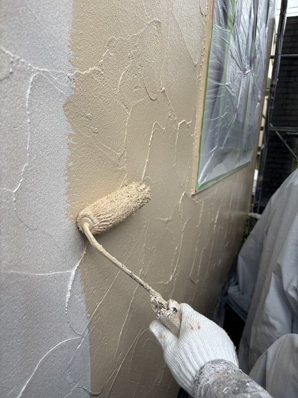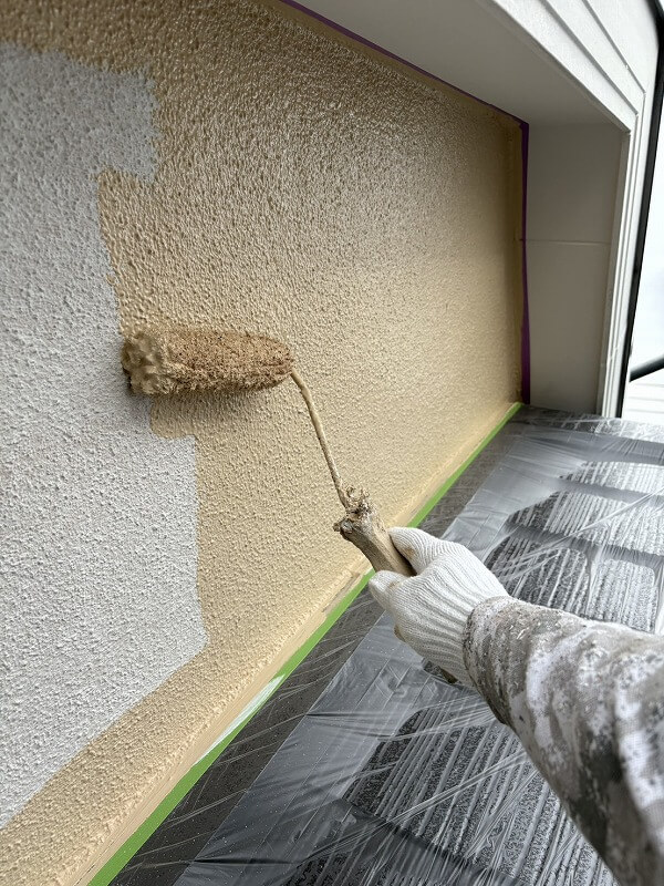 中塗りを進めます。(エスケー化研 水性セラミシリコン SR-406)