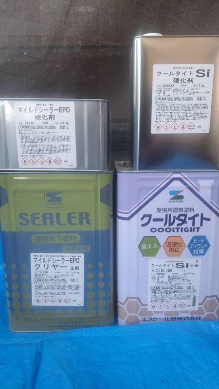 塗装に使用した塗料です。(エスケー化研マイルドシーラーEPO / クールタイトSi CLR-106)