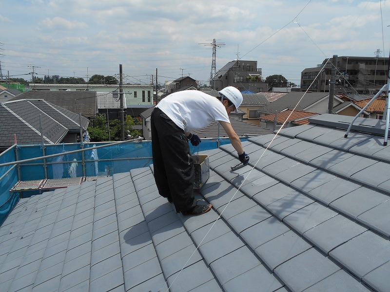 練馬区T様邸⑥|屋根のダメ込み・上塗り、養生