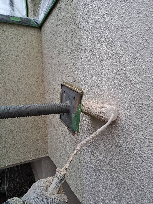 ベランダ内の外壁も中塗りまで完了しました。(エスケー化研 アートフレッシュ AC-3043)
