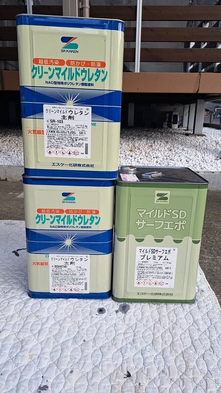 アクセントの外壁に使用した塗料です。(エスケー化研 クリーンマイルドウレタン 75-40L)