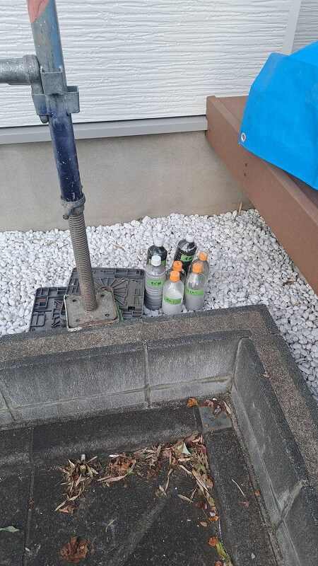 使用した塗料はペットボトルに入れて補修用として現場に置きました。