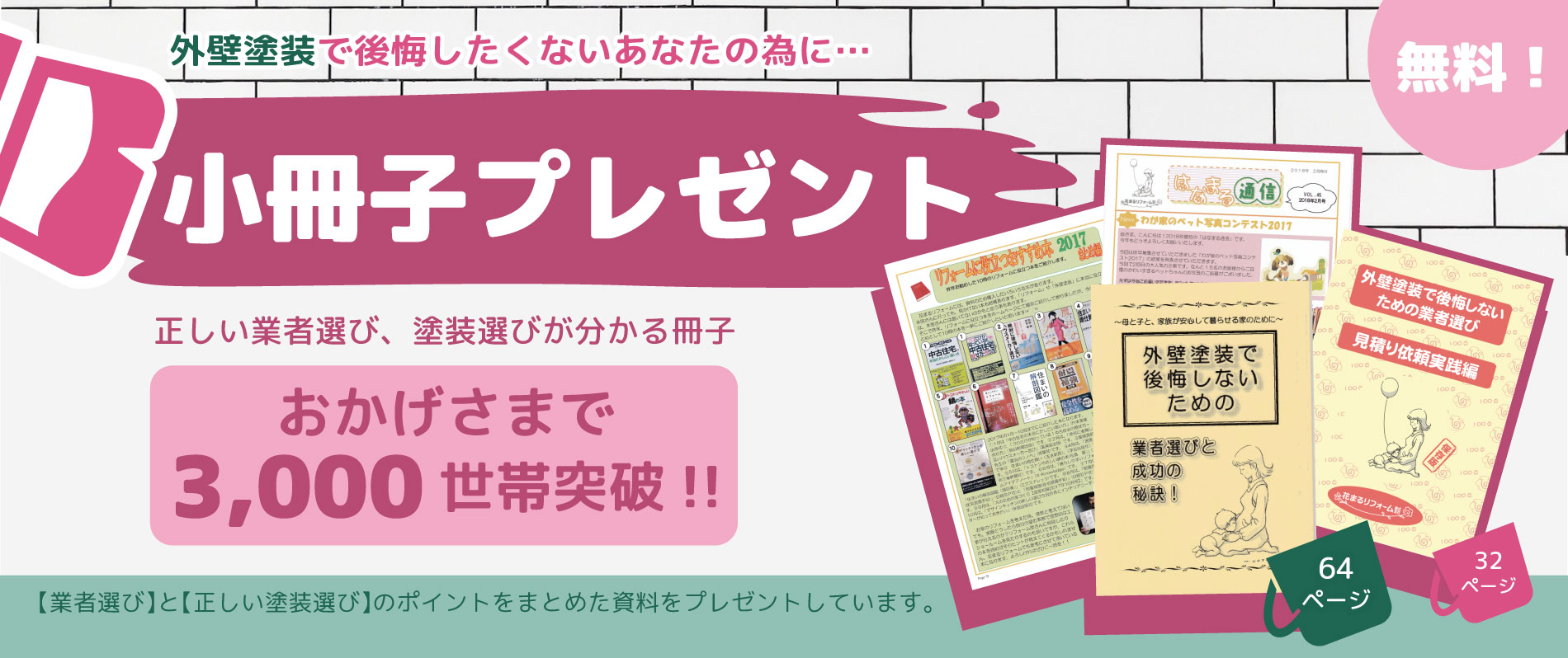 なんと無料!外壁塗装で後悔しないための小冊子プレゼント