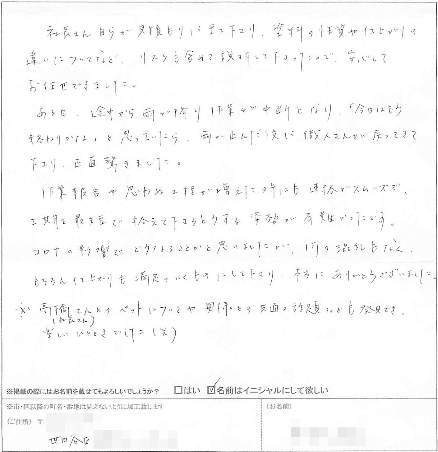 世田谷区 K様から頂いた「お客様の声」(2020年04月09日 完工)