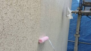 外壁の中塗りをしています。(エスケー化研 アートフレッシュ AC-1002)