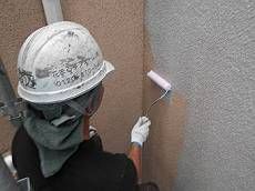 ![]() 中塗り・上塗りを施します。遮熱塗料のクールタイトSiを使用しています。 |