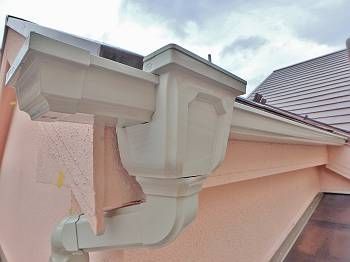 雨樋も白系の調合色で塗り替え。外壁に似合う明るい雰囲気が出ています。 |
