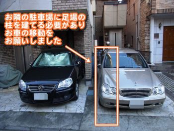 お車は移動して頂き、お隣のこの部分の土地をお借りしました