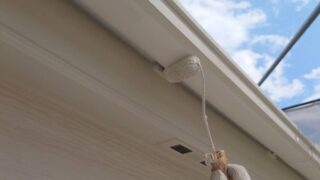 外壁の上塗り中です。(エスケー化研 クリーンマイルドウレタン 17-90A)