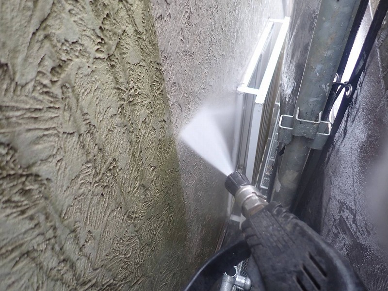 こちらは基礎に生えたコケ。基礎は塗装することが少ないため、高圧洗浄で落ちなければ、そのままとなります。工事開始