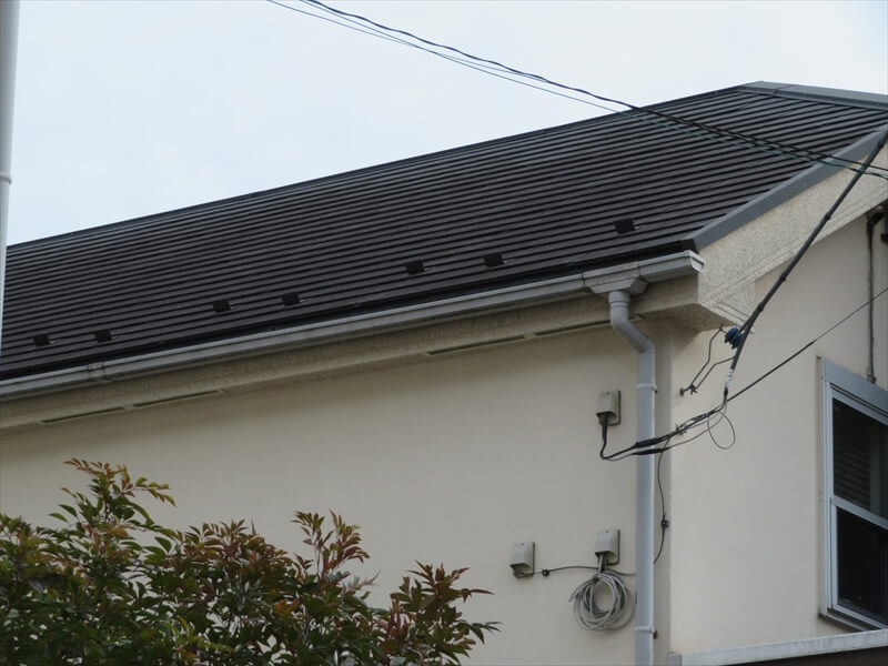 屋根の上塗りが完了しました。(エスケー化研 クールタイトSi CLR-106 グレー)