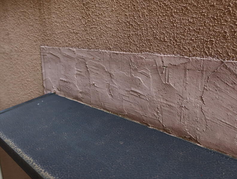 シャッターボックス周りの補修跡をマスチックローラーでゆず模様にしました。(エスケー化研 水性ソフトサーフSG)