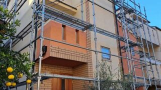 敷地内に足場を立てる場所がなく、お隣に了承をいただいてお隣の敷地から足場を建てさせていただきました。