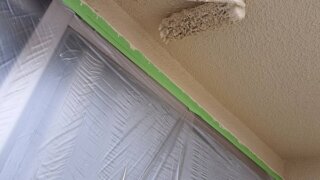 車庫内外壁の中塗り中です。(エスケー化研 アートフレッシュ AC-2225)