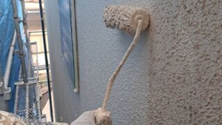 外壁の下塗り中です。(エスケー化研 水性ミラクシーラーエコ クリヤー)