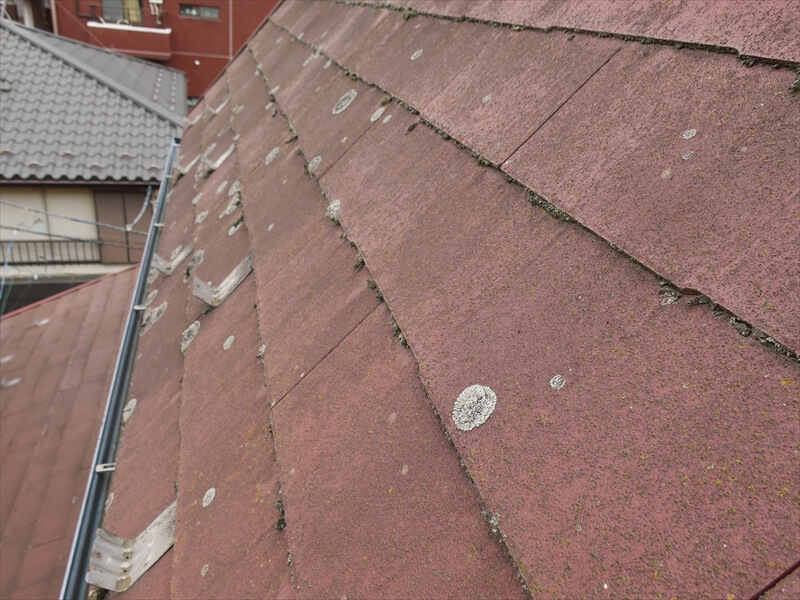 屋根にコケ汚れはありますが、大きなトラブルはなさそうです。