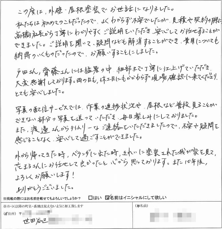 不安や疑問を感じることなく、安心して過ごすことができました。 |世田谷区S様