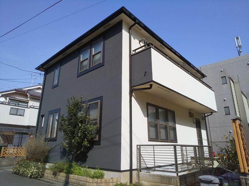 モノトーンでシックな色分けに変更した外壁と屋根の塗装|アートフレッシュ AC-1116 AC-3021|杉並区K様邸
