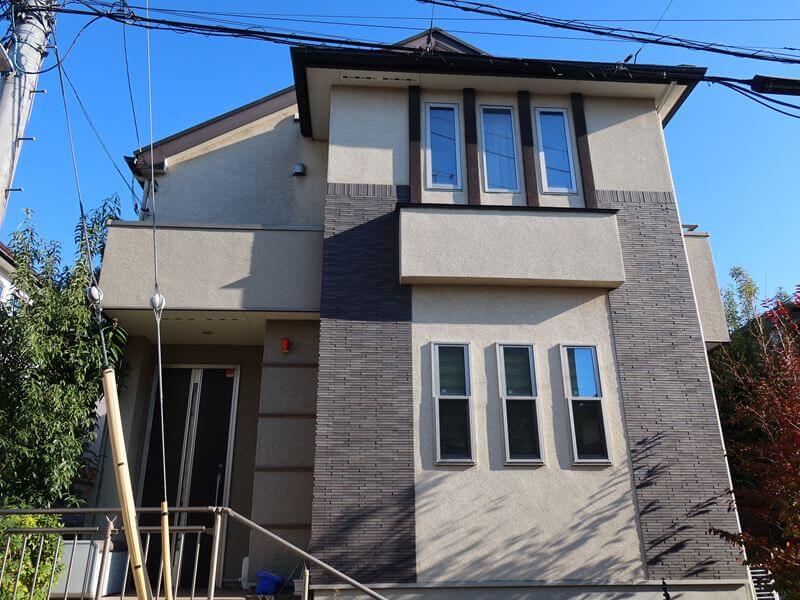 新築時に合わせ基礎を塗装した屋根と外壁の塗装|アートフレッシュ AC1002 AC1186 HS1520|杉並区D様邸